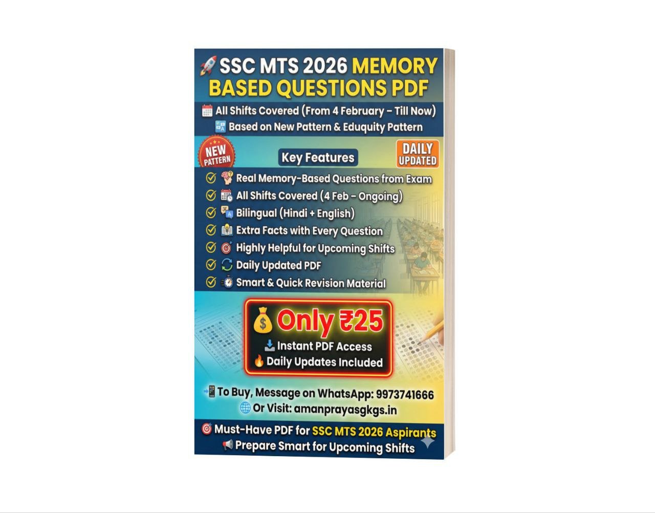 SSC MTS 2026 – Real Exam Questions (4 Feb – Ongoing) with Extra Facts